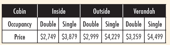 Price Per Person: See Table